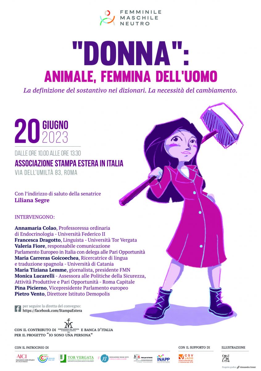 L'Associazione Femminile maschile neutro organizza “DONNA”: ANIMALE, FEMMINA DELLUOMO la definizione del sostantivo nei dizionari. La necessità del cambiamento